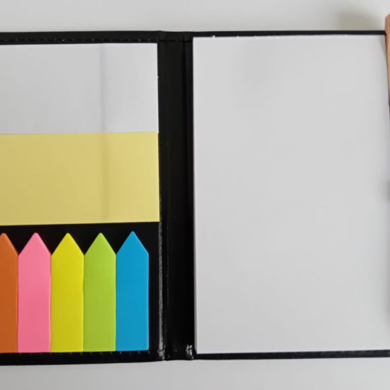 Unser Lotter-Abreißblock mit Haftnotizen und Seitenmarkierern und Kugelschreiber ist für 5 Euro pro Stück käuflich zu erwerben.